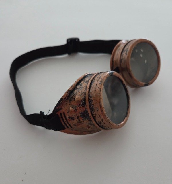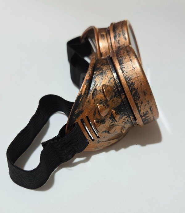 Anteojos Modelo Mad Max. Producto de cotillón. material plástico color bronce oxidado. tiene elástico para su sujeción. Ideal para fiestas tematicas, halloween, disfraces, adultos y niños. podes completar tu look con sombrero o galera.